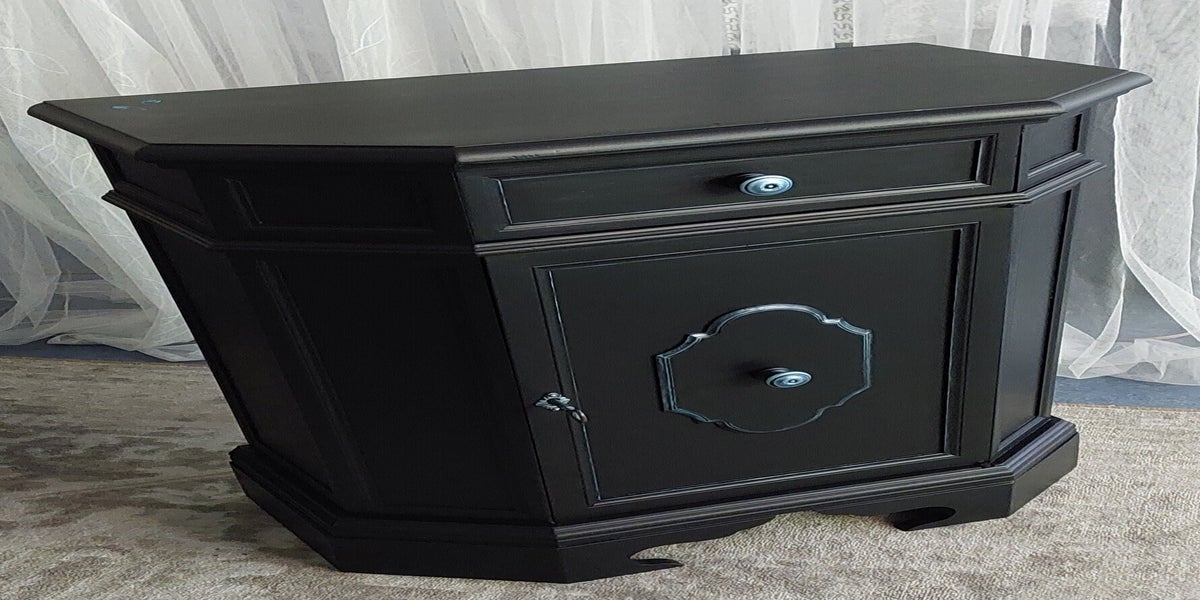 Zwarte kast met turquoise accenten